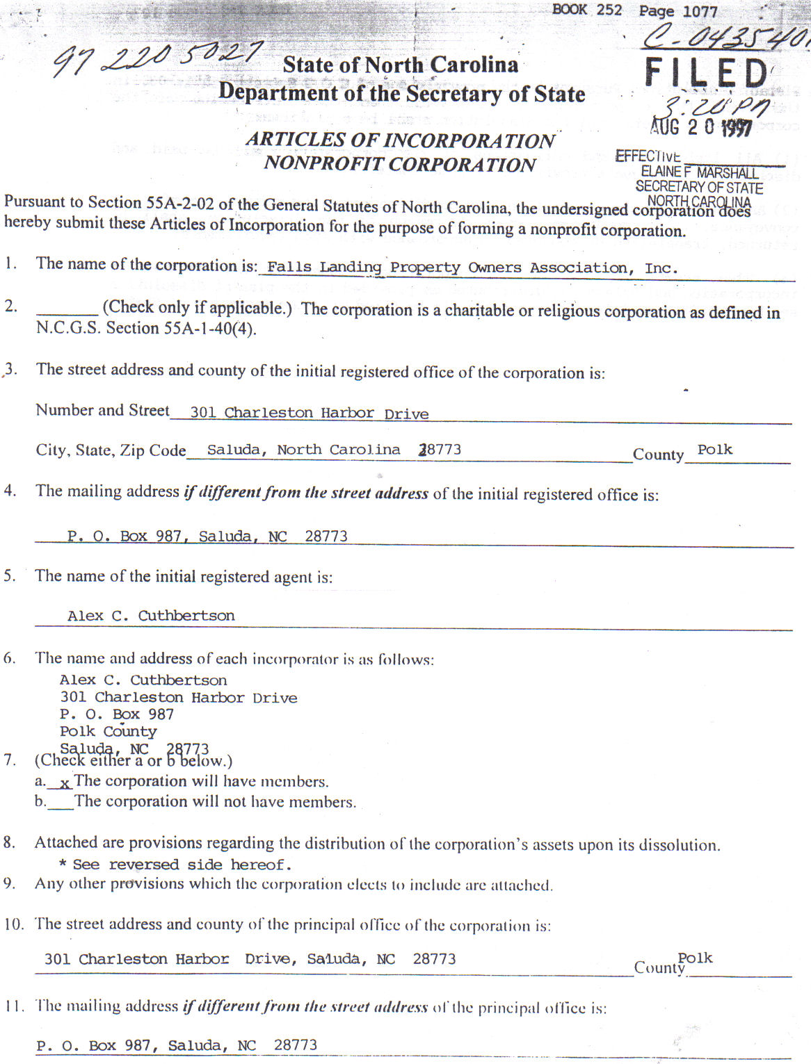 © 2017 All contents property of Falls Landing P.O.A. Inc.